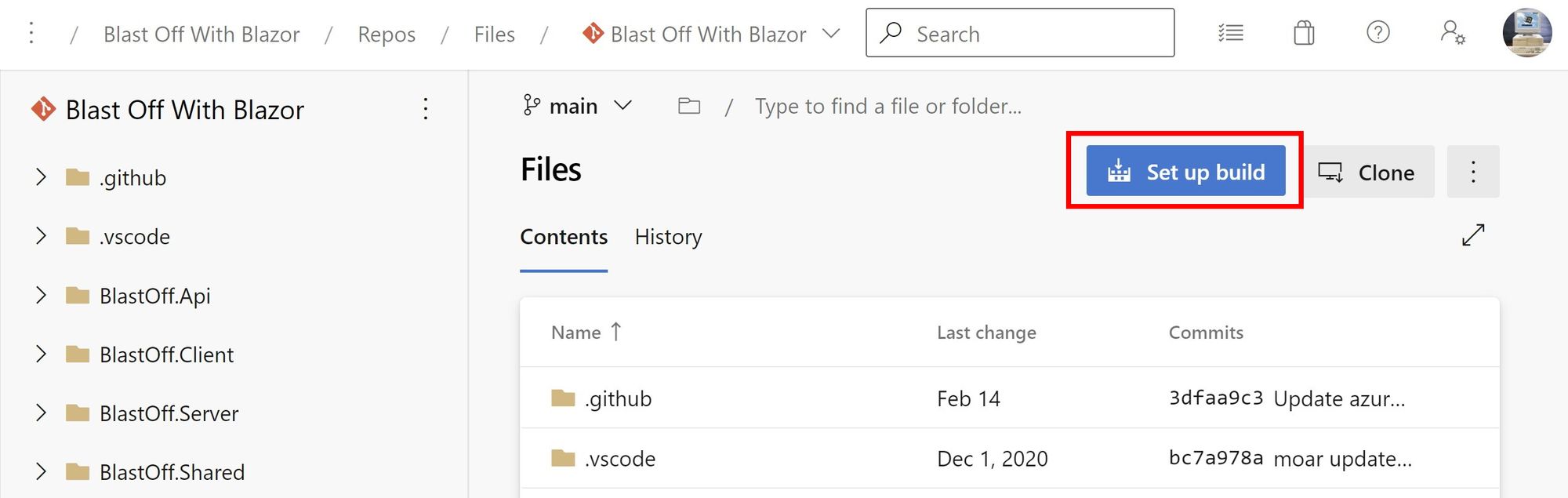 From your Azure DevOps repository, select Set up build.