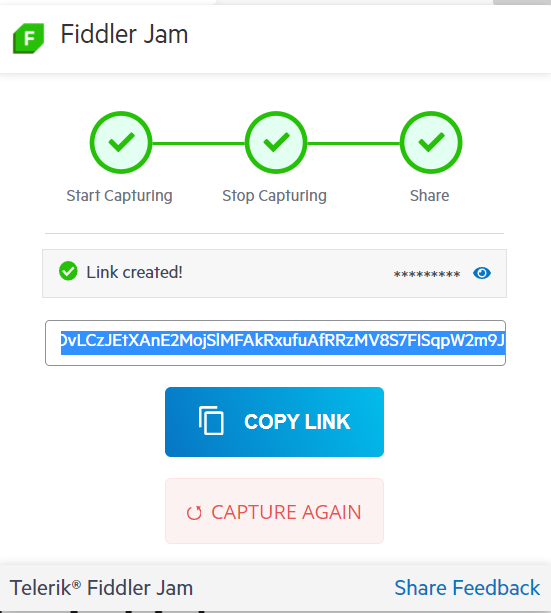 Have you heard about Fiddler Jam? A relative newcomer to the Telerik Fiddler suite of products, Jam is a solution to help support and development teams troubleshoot remote issues with web applications in a quick, easy and secure fashion. How does it work? Users of your site can use a Chrome extension to share the full context of the issue—capturing network logs, browser console logs and screenshots—and the support team can analyze the data immediately. If needed, developers can reproduce and debug the issue using the Fiddler Everywhere debugging proxy.